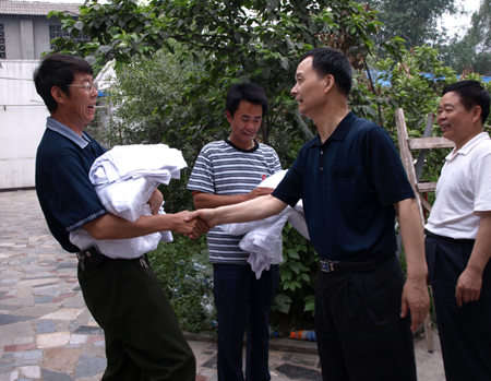 5月24日晚至5月25日早10时,陕籍100辆货车按照四川方面的安排,已装载药品、帐篷等救灾物资向广元、阿坝自治洲和汶川地区等方向运送。厅运管局吕东昌局长于5月25日上午特派马毅敏工会主席专程乘机前往灾区,代表省交通厅、厅运管局慰问一线人员,并购买了电脑和500件印有“陕西交通 抗震救灾”字样的T恤衫,赠送给一线抗震救灾的同志们,以展现陕西交通人的良好形象。