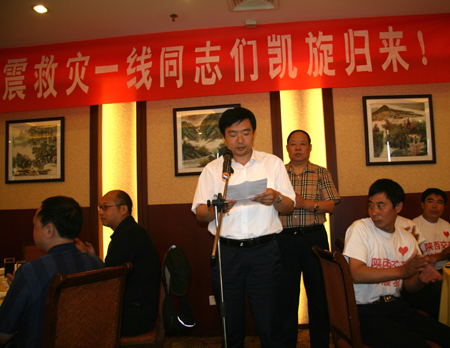 6月2日中午,厅运管局代表省交通厅对圆满完成任务的救灾队伍举行欢迎宴会,吕东昌局长主持宴会,陈波书记受厅主要领导委托发表热情洋溢的讲话。