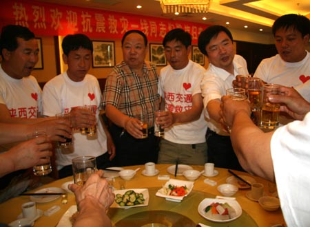 2008年6月1日下午,陕西赴四川抢运救灾物资的100辆货车驾驶员圆满完成救灾物资运输任务后安全返回西安。这次我省赴川抗震救灾车队从成都火车站、双流机场等地将药品、帐篷、食品等各类救灾物资顺利运送到阿坝自治州的汶川、茂县等13个县及都江堰、绵阳、广元重灾区,总计投入抢运车辆112辆次,抢运救灾物资1100吨。我省所有赴川抗震救灾人员在抗震救灾运输的10天中均做到了一切行动听指挥,在执行抢运救灾任务中面临生命危险毫不畏惧,各位领导身先士卒、勇挑重担,他们表现出的临危不惧、攻坚克难的大无畏精神深深感动了灾区人民,得到四川交通部门的高度赞扬,为陕西交通人增了光,添了彩。