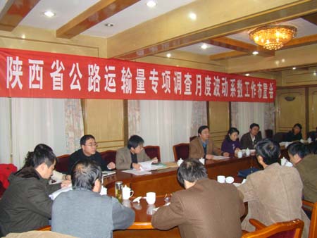 11月初,陕西省公路运输量专项调查办公室已将《关于上报公路运输量专项调查月度波动系数通知》文件下发各市(区)专项调查办公室。为进一步落实文件精神,12月17日召开全省公路运输量专项调查月度波动系数工作布置会。会上局综合规划科对2008年年报及2009年定期报表工作进行了安排部署,并对公路运输量专项调查月度波动系数工作做了细致的要求。各市(区)专项调查办公室领导及工作人员20余人参加会议。