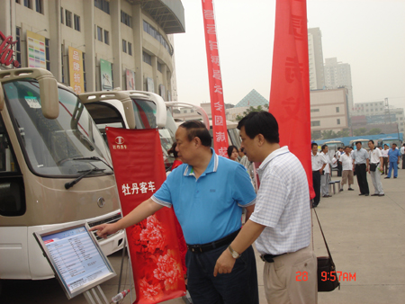 为贯彻落实省政府全省通村客运现场会精神,按照陕西省交通运输厅关于通村客运车辆补助工作的要求,厅运输管理局于7月28日在陕西省体育场承办陕西省通村客运车辆展示会。展示会本着选择安全经济、节能环保车型出发,组织全省各市区交通运输管理部门、道路运输管理机构和有关运输企业负责人26人组成专家考评组,对全国23家客运车辆生产企业的29种型号62款通村客运专用车辆进行技术指标、售价、油耗量、安全性能及服务等综合评估。