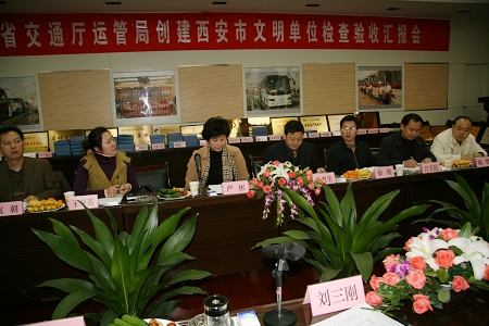 11月11日,以西安市文化局严彬局长为组长、西安市文明办副主任线惠生为副组长的检查组,一行8人在莲湖区宣传部副部长、区文明办主任王晓燕陪同下,对厅运管局创建西安市文明单位检查验收。省厅文明办王根林主任到会进行了指导,局班子成员和全体中层干部参加了汇报会。