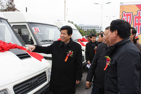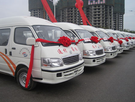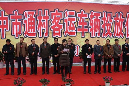 2009年11月28日,汉中市隆重举行通村客运投放仪式,首批投放通村客车300辆,涉及11个县区,新开通通村客运线路85条服务广大农民群众。李永民副厅长代表省交通运输厅对汉中市新投放的300辆通村客车现场发放600万元的资金补助,汉中市委常委、常务副市长杨达才对汉中通村客运提出了希望和要求,汉中市政府程道全副秘书长发布了通村客运开通令,汉中市交通局副局长、市运管处处长张建飞介绍了汉中通村客运发展简况。省厅运管局刘三刚局长,省厅运输处林鸣副处长,汉中市市委宣传部、市交通局、市监察局、市交警支队、市公路局、市运管处负责同志,以及11县区交通局、运管所和相关客运企业的领导参加了投放仪式。