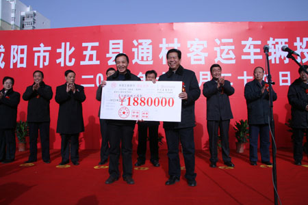 近年来,随着公路建设强势推进,对加快农村客运提出了新的要求。在市委、市政府和省厅的领导下,咸阳市按照路通车通的发展思路,大力发展通村客运,初步形成了以县城为中心辐射乡镇和行政村的城乡客运格局,基本满足了广大群众的出行需求。目前,全市共建成乡镇五级客运站78个,农村招呼站498个,开通农村客运班线253条,投放客运车辆1332辆,乡镇通车率达到100%、行政村通达率达到93 %。本次投放94辆通村客运车辆,新开通通村客运线路35条,再通达69个行政村,解决了8万多群众的出行问题。