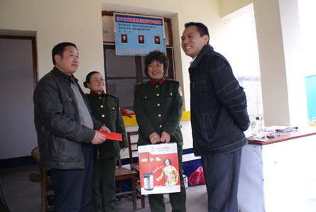 春节前夕,运管局局长刘三刚、党委副书记潘绍忠、纪委书记张江怀分别带领局治超办及有关部门负责同志,分别深入到西安、宝鸡、咸阳、渭南、榆林、延安、铜川、汉中、商洛市等距城镇较远,条件比较艰苦的源头治超监驻点对驻点监管的一线运管人员进行亲切慰问,并给他们带去了慰问金和慰问品。2月5日下午,刘局长来到泾阳县声威水泥有限公司源头派驻站点,仔细察看源头监管工作记录,详细询问治超人员的工作和生活,勉励工作人员继续发扬艰苦奋斗的优良传统和作风,爱岗敬业,严防死守,打好源头治超攻坚战。基层运管同志深受省局这一举动的鼓舞和感动,纷纷表示一定认真履行好源头治理的监管职责,决不辜负组织和领导的重托与期望。