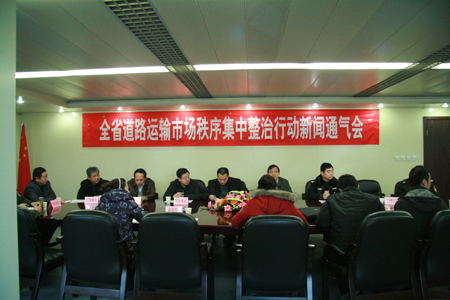在会上,联合执法办公室主任、厅运管局龙浩仔副局长介绍了近年来交通、公安联合整顿道路运输市场秩序的工作开展情况,详细分析了当前全省道路运输市场的基本情况,联合执法领导小组副组长、厅运管局刘三刚局长宣布了整治行动的目标和具体方案。新闻通气会由厅运管局党委书记潘绍忠同志主持。