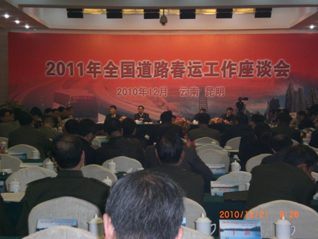 近日,交通运输部在昆明召开了全国道路春运工作会议,安排部署2011年道路春运工作。全国各省、市、区道路运输管理部门负责人、骨干运输企业负责人共计160余人参加了会议。会议贯彻落实了交通运输部党组关于做好春运工作的总体要求,学习传达了国家发改委《关于认真做好2011年春运工作的通知》精神,深入分析了2011年春运面临的新形势和新特点,对切实抓好2011年道路春运工作进行部署。各省代表交流介绍了本地区2011年春运工作筹备情况及具体措施。