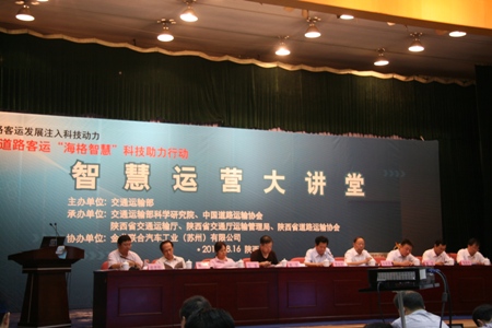 2011年8月16日,全国道路客运“海格智慧”科技助力行动安全节能科技知识大讲堂陕西站巡讲活动在西安市陕西宾馆隆重举行。各设区市道路运输管理机构、交通运输局、一、二级客货运输企业、公交企业主要负责人和主管节能减排、安全生产负责人及相关业务人员约170人参加了会议。