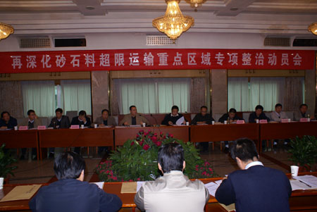 11月16日,厅运管局召集各市区运管处分管源头治超工作的领导、治超办主任、13个砂石料超限运输重点区县的运管所所长,在西安召开再深化砂石料超限运输重点区域专项整治活动动员会。