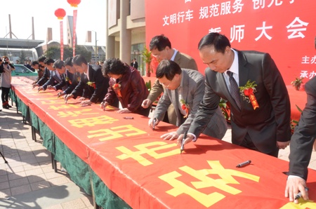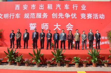 为进一步增强出租汽车从业人员文明交通意识,促进全行业文明交通和规范服务良好风尚的形成,充分展示出租汽车行业广大从业人员良好的道德修养和文明素质,为中外宾朋和广大市民营造一个安全、舒适、满意的出行环境,3月31日,西安市出租汽车管理处举行出租汽车行业竞赛活动誓师大会。西安市政府、西安市交通运输局、厅运管局相关领导出席大会。