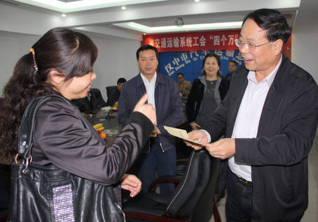 在汉中市汽车运输总公司,陈武汉主席一行向企业负责人和职工代表详细询问了企业生产经营、工会运转、以及职工“五险一金”的交纳情况。在听取汇报后,陈武汉一行认为汉运司作为地方的运输龙头企业,为当地经济社会发展做出了贡献,肯定了公司党、政重视支持工会工作的作法,尤其对企业工会建立的“工会互助金”制度进行了表扬。同时强调工会要充分发挥桥梁纽带作用,形成强大的凝聚力和向心力,围绕中心,服务大局,在群众性劳动竞赛、职工队伍建设、民主管理、维权维稳等方面努力工作,通过开展“情满车厢、舒心旅途”、星级客运站评选活动,为社会提供安全、舒适、便捷的服务。陈武汉主席还看望慰问了汉运司修配车间的聋哑残障困难职工赵小丽,并发放了救济金。