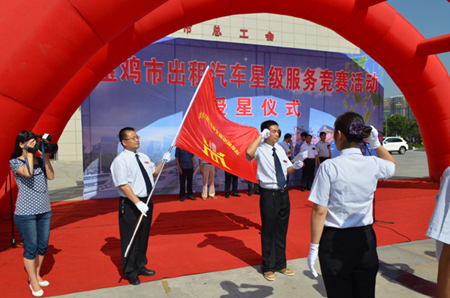 7月5日,宝鸡市文明办、市交通运输局举行出租汽车星级服务竞赛活动授星仪式,宝鸡市政协、市委宣传部、市文明办、市总工会等相关领导出席了仪式,200辆出租汽车被授予星级出租汽车荣誉称号。授星仪式上,陈奋祥处长宣读了授星决定,宝运出租汽车公司经理代表全市出租汽车行业表态发言,宝鸡市出租汽车行业五星尚礼金牌文明车队队员集体宣誓。