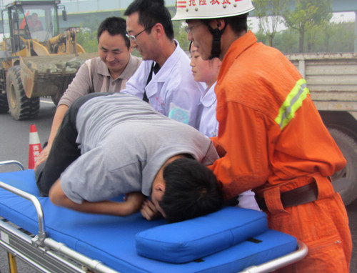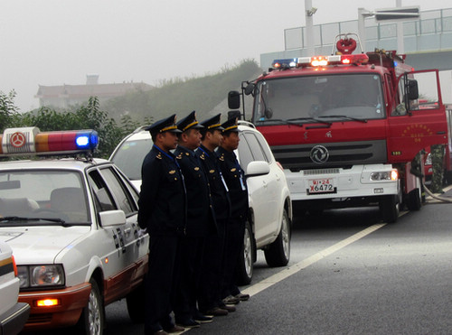 9月26日,西乡县在“十天”高速西乡至堰口出口段举行了大规模、跨行业的道路运输安全应急联合演练,安监、交警、运政、路政、医疗、消防等部门的60余人参加演练。应急演练模拟因雨造成道路垮塌,一辆货车因躲避塌方撞上防护栏,车头失火、车身变形、车上人员受伤被困。上午9时,演练指挥部接到报警后,演练人员迅速集结赶赴出事现场,交警部门立即对高速公路西乡出口与堰口出口段进行交通管制,并展开现场勘测;路政人员设障、封道;消防人员对火势进行扑救并利用专业破拆工具解救被困人员;医疗人员对伤员现场救护;运管人员协助疏散人员,疏导交通,并及时联系维修施救车辆,将肇事车辆拖离现场;公路养护人员立即对道路进行抢修。9时50分,事故路段恢复通行,演练过程中,各部门参演人员密切配合,各司其职,演练活动紧张有序、有条不紊,取得圆满成功。