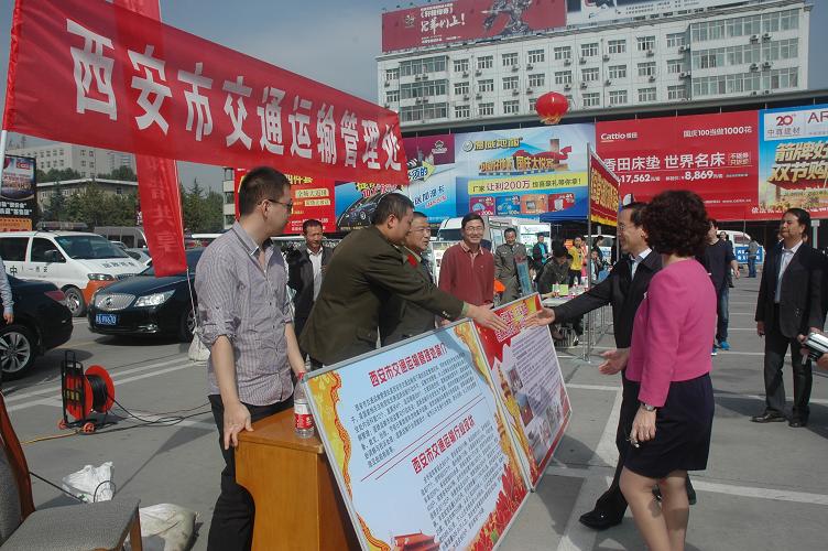 宣传活动中,西安市运管处工作人员积极主动地向过往群众发放宣传资料,热情接待前来咨询的群众,内容涉及《道路运输条列》、行业自律、执法规范、服务承诺和监督制约、行政审批程序等方面。