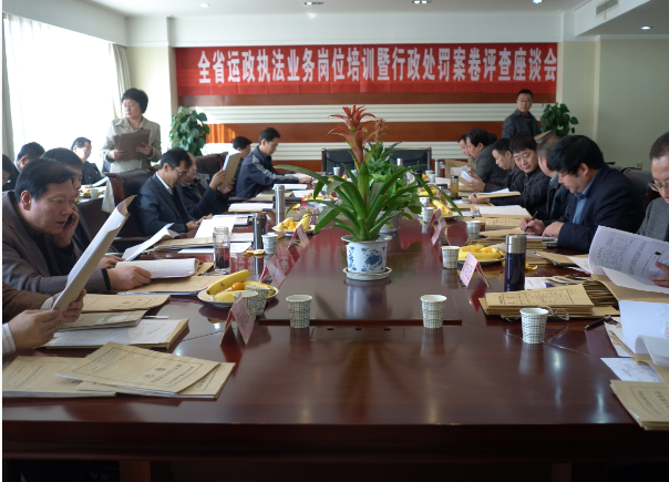 本次行政处罚案卷评查共12个单位参加,报送案卷212份。按照会议要求,与会代表采取交叉阅卷的方式对今年来的行政处罚案卷进行了互查,并对案卷中存在的问题进行了分析讨论,对执法文书(案卷)的使用提出了合理性的意见。按照议程安排,会议就省厅颁布的《陕西省道路运政稽查管理办法》进行了宣贯。为规范道路运输行政执法工作,会议还对执法工作中道路运输经营性行为的界定和实施行政处罚的原则、严格道路运输行政处罚行为管理、依法进行源头监管以及坚持文明执法、规范执法等内容进行了讨论,进一步明确了思路,统一了思想,为今后规范我省运政执法工作奠定了良好基础。