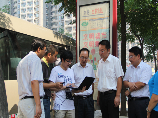 7月31日,全省城市客运专调外业采集工作已全部完成,共采集10地市438条公交线路、11460个公交站点、90个公交保养场和860个出租车站点。在市专调办进行数据抽查的基础上,省专调办自7月8日陆续对各市数据进行了抽查复核。8月15日,由省交通厅、厅运管局、技术协助单位长安大学联合组成了督导组,对西安市城市客运专调采集数据进行了抽查复核。督导组首先听取了厅运管局和市交通局全省城市客运专调总体情况的汇报,省专调办主任姬建锋、副主任王成对全省尤其是西安市本次调查工作给予充分肯定,并强调在下一步的工作中要注重数据复核,圆满完成数据报送工作,同时希望西安市继续大力支持即将开展的交通经济调查工作。随后,督导组一行会同西安市交通局、市运管处、公交总公司和市出租处代表,随机抽取了5条线路、2个公交保养场和10个出租站点进行实地数据抽查。