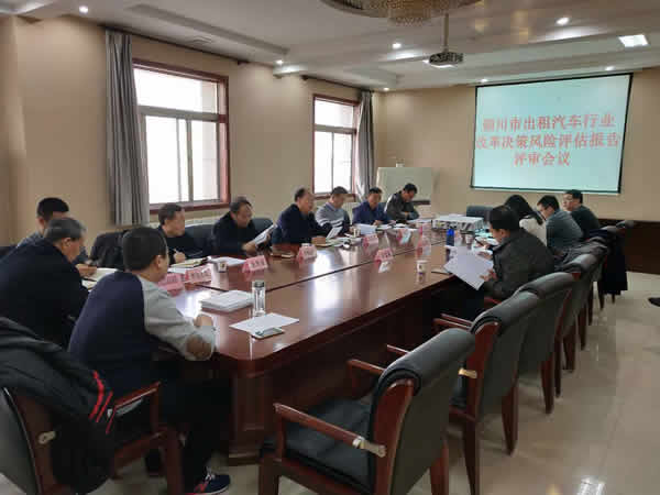 12月12日,铜川市召开了出租汽车行业改革社会稳定风险评估评审会议。西安市风险评估专家库成员张丽雅等三位专家及市维稳办、市信访局、市交通运输局和行业相关单位负责同志参加的会议。
