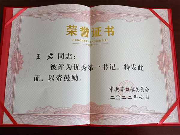 “七一”建党101周年之际,中共亭口镇委员会发布关于表彰先进党支部、优秀第一书记和优秀共产党员的决定,对在工作中表现突出的先进党支部、优秀第一书记、优秀共产党员予以表彰。我中心驻村干部王君同志荣获“优秀第一书记”荣誉称号。