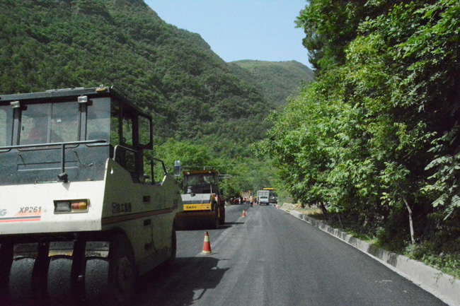 2015年6月9日,伴随着摊铺机、压路机、胶轮紧张有序地配套作业,汉中公路局2015年大中修工程项目309省道略阳郭镇至甘肃界大修路段AC-13沥青混凝土面层施工全面完成。