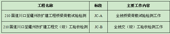 210国道川口至耀州改扩建工程(以下简称“本项目”)已由陕西省发展和改革委员会《关于210国道川口至耀州公路改扩建工程可行性研究报告的批复》(陕发改基础〔2011〕2400号)和《陕西省交通运输厅关于210国道川口至耀州一级公路改扩建工程初步设计的批复》(陕交函〔2012〕86号)批准建设,项目业主为210国道铜川段改建工程建设项目管理处(以下简称“招标人”),对全线桥梁荷载试验检测及交(竣)工验收检测进行招标,项目已具备招标条件。建设资金来自国家补助及地方自筹。现委托招标代理机构陕西交通公路设计有限公司(以下简称“代理机构”)对该项目进行公开招标。特邀请有兴趣的潜在投标申请人(以下简称“申请人”)提出投标申请。