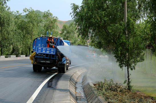 为及时应对高温天气,陇县段全段动员浇灌公路沿线绿化苗木,确保公路绿化、美化水平不降等。