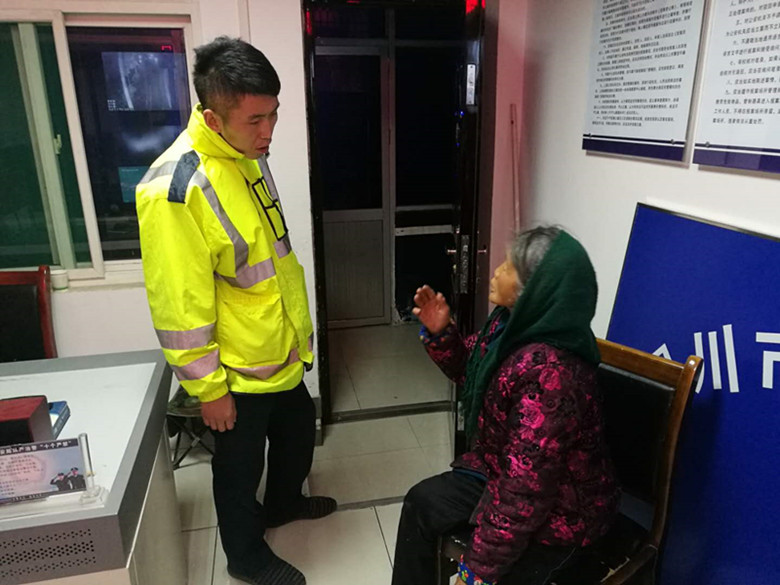 经过和老人交谈,发现老人说话含糊,神志不是很清楚,无法准确述说家庭住址及亲人联系方式。为避免意外发生,巡查人员将老人护送到耀州公安分局稠桑派出所,求助公安民警协助联系其老人家属。