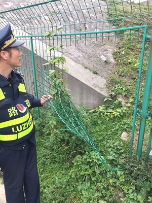 加强设施排查。对辖区安全防护设施进行全面排查,对排查出的铁丝网隔离栅缺失、破损以及封闭设施损坏等问题,及时通知养护部门进行修复完善,并对比以往排查修复情况,罗列出易遭损坏和反复损坏的重点点位,制作悬挂警示标志牌。截止目前,累计修复铁丝网300余米,悬挂警示标志牌27块。