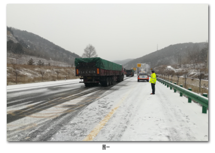 画面一:黄延路政大队冒雪开展路政巡查。雪情就是命令。1月3日,为全面了解所辖路段降雪情况,黄延路政大队一大早就对全线进行了一次巡查,摸清了降雪重点位置,以便于下一步的除雪工作顺利开展。