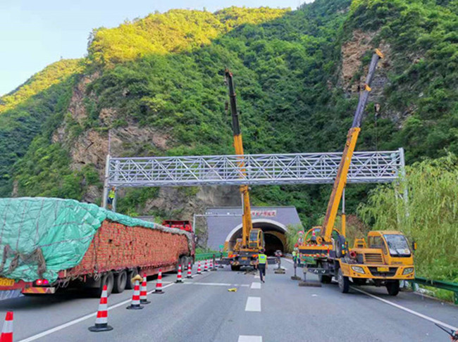 8月16日下午,随着最后一颗螺丝的加固,略阳路政中队辖区首批ETC龙门架系统正式吊装完成。