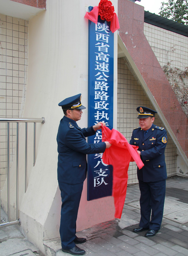 2月4日上午,陕西省高速公路路政执法总队第八支队揭牌仪式在汉中举行。支队梁小强同志和钟峰同志为第八支队揭牌,周建民同志主持揭牌仪式,支队全体干部职工参加。