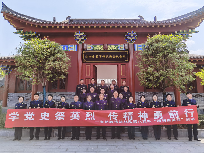 4月8日,省路政执法总队第八支队组织支队机关和直属大队全体党员干部前往西乡骆家坝红色教育基地,开展了以“学党史祭英烈 传精神勇前行”为主题的清明祭英烈活动。