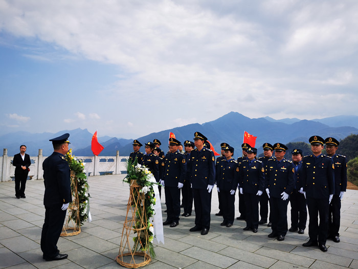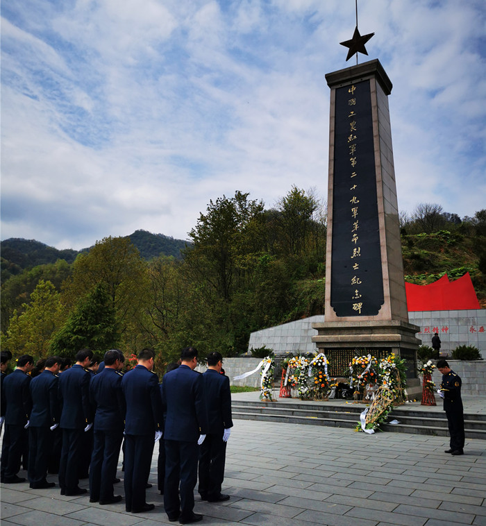 随后,大家前往骆家坝马儿崖红二十九军革命烈士纪念碑,现场举行了向革命烈士敬献花篮仪式。全体党员干部着装整齐、脱帽默哀、向烈士行三鞠躬礼。讲解员详细讲述了震惊陕南的“马儿崖事变”。支队领导带领大家追忆英雄,缅怀先烈,号召大家继承革命传统,弘扬革命精神,坚定理想信念,建功伟大时代。