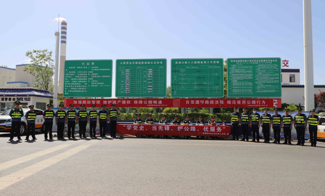 5月27日,省路政执法总队第七支队副支队长郑怀鹏带领支队路政管理科、监察监督科,联合管辖路政大队在榆林东收费站集中开展以“学党史、当先锋、护公路、优服务”为主题的“路政宣传月”活动。