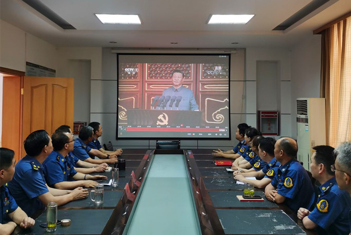 7月1日上午8点整,省路政执法总队第八支队组织全体党员干部收看“庆祝中国共产党成立100周年”大会实况电视直播。会上,习近平总书记发表重要讲话,使广大党员干部产生了强烈的反响,令人倍受鼓舞,深受启发。