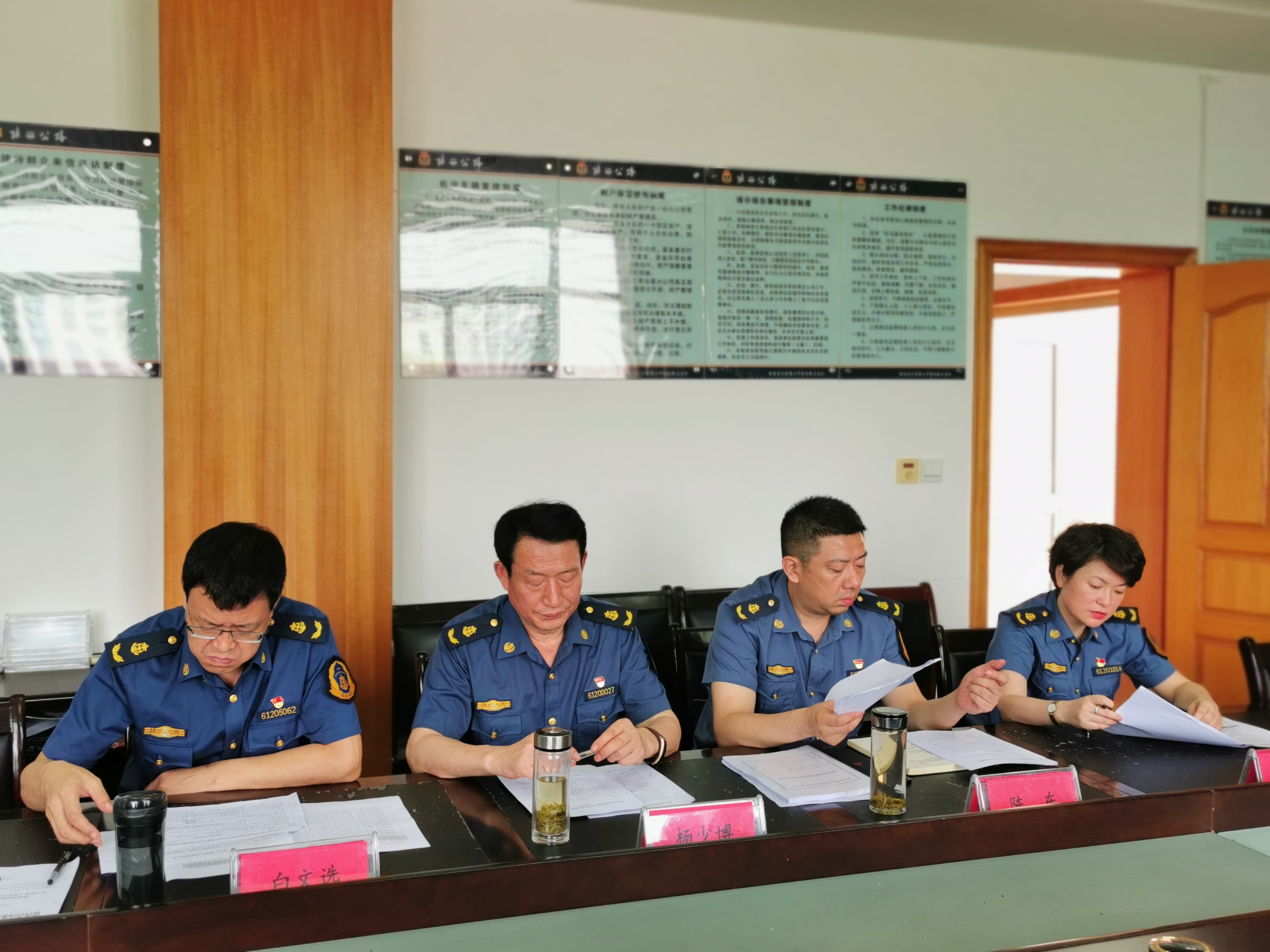 在首先召开的机关全体人员大会上,杨少博主席对此次调研督导的内容、方式作了介绍,支队党组书记、支队长梁小强就第八支队党史学习教育;高速路政执法领域突出问题专项整治行动;高速路政执法工作;安全生产、防火防汛及疫情防控;办公用房清查整改等五个方面的工作进行了汇报。随后,调研督导组成员分头深入到相关科室查阅资料,进行了实地核查。