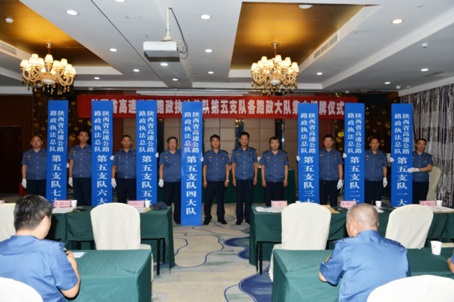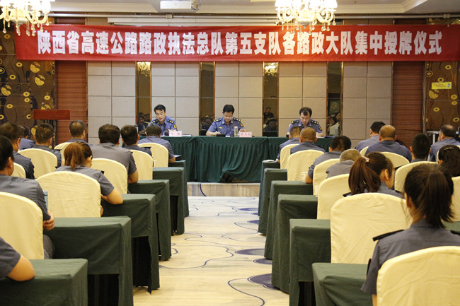 9月15日,省高速公路路政执法总队第五支队举行一至七大队集中授牌仪式,支队全体人员参加,副支队长齐尧主持会议。