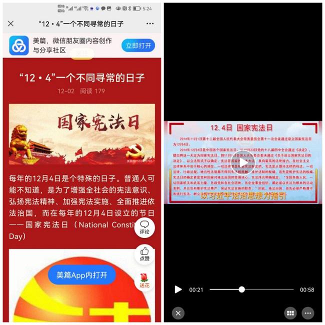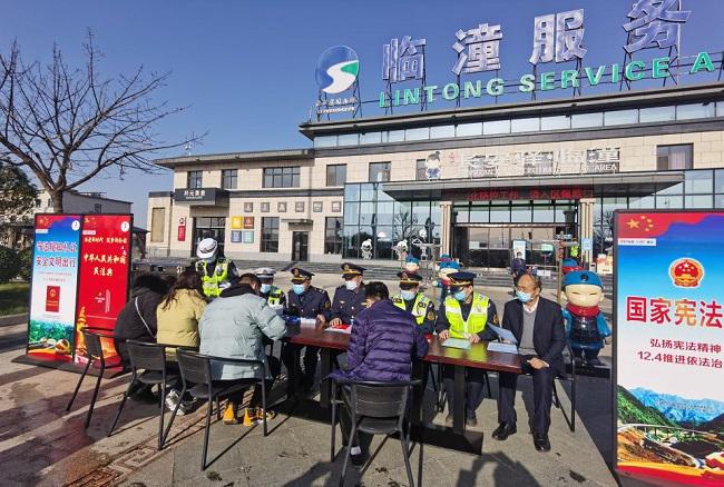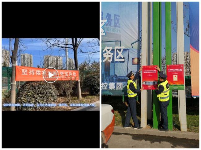 活动期间,支队采取“线上+线下”方式,开展了丰富多彩、形式多样的宣传活动,营造了良好的法治学习和宣传氛围。一是深入学习宪法和习近平法治思想。通过微信群推送宪法系列知识、习近平法治思想专家谈系列访谈视频,进一步加深干部职工对习近平法治思想的理解,领悟基本精神,增强依法行政意识。同时,组织干部职工参加“学习强国”推出的“宪法宣传周”专项答题,巩固学习成果。二是开展集中宣传活动。落实“谁执法谁普法”普法责任制,各路政大队将习近平法治思想学习宣传与路政执法普法宣传相结合,通过设置咨询台、悬挂条幅、张贴海报、发放宣传资料等方式,联合有关单位和部门,在办公场所、高速公路收费站和服务区、沿线乡镇街道等地向过往司乘人员、运输从业人员、群众开展宣传,普及法律知识、答疑解惑,引导广大群众牢固树立宪法和法律意识,养成依法办事、遵法守法的良好习惯。三是开展“宪法宣誓活动”。第一支队二大队全体党员面对国旗宣誓,铮铮誓言表达了忠于宪法、忠于祖国、恪尽职守、廉洁奉公的决心。四是开展网络宣传。第一支队七、八大队制作短视频、美篇,普及宪法知识,弘扬宪法精神。