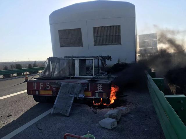 五大队迅速到达大件车辆着火地点,立即联合管护大队共同协助交警,拉响警笛,摆放锥桶,对高速公路进行临时交通管制,做好现场安全防护及初步灭火工作,等待消防救援。最终在五大队和交警、管护大队、消防救援部门的共同努力下,成功扑灭火情,恢复高速公路通行。随后,五大队协助管护大队等部门进行现场勘验,等待事故现场撤场。