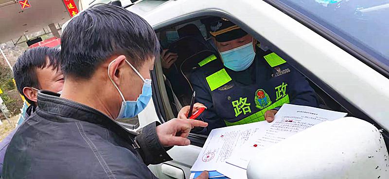 1月9日21时许,第十支队五大队接辖区镇安收费站举报,出口车道有6辆湖北籍罐式六轴半挂车,载重量均超过49吨,疑似违法超限运输。受理案件后,五大队按照镇安县疫情防控要求,第一时间要求驾驶人员进行核酸检测,并及时向支队报告。待驾驶员核酸检测正常后,五大队立即组织执法人员对6辆违法超限运输车辆进行现场勘验,通过出口称台对货车再次称重,收集货车在收费系统上下站的重量数据。经勘验,6辆罐车均存在违法超限运输行为,其中超限量最小的1.5吨,最大的2.7吨。执法人员立即锁定相关证据视频、照片资料,通过以案释法宣传高速公路法律法规,告知当事人违法事实、处罚理由、依据及其享有的权利和救济途径,并当场制作《责令改正违法行为通知书》《当场行政处罚决定书》交当事人确认签字,责令其及时消除违法状态,并依法予以罚款处罚。驾驶员当场缴纳罚款,案件处理完毕。