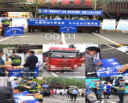 5月11日当天,大队联合西镇高速交警中队、高速公路运营管理单位柞水、镇安管理所,先后在柞水、塔云山服务区、柞水县强森希望小学、中铁七局三公司西康高铁项目部、柞水县客运站等进行集中宣传,就群众关心的公路保护、缓堵保畅、超限超载等问题进行面对面交流,共摆放展板19快,横幅9条,发放《陕西省高速公路路政执法总队第十支队五大队致包茂高速西镇段沿线村民的一封信》560余份,发放公路桥隧安全各类宣传单3400余份,受教育人群约1310人次,受到教育的群众纷纷表示,以后不但自己要自觉遵法、懂法、守法,爱路护路,还要自觉当义务宣传员,常给周围的群众宣传公路法律法规。