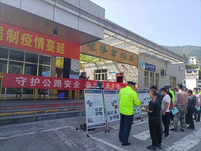 近日,省路政执法总队第九支队二大队联合陕西交控安川分公司高滩管理所,在所辖高速公路沿线乡镇、集镇、服务区,围绕路域环境治理、超限运输和养护作业安全,有针对性地开展了以“保防疫、保畅通、保运输、保稳定”为核心、“守护公路安全,争当服务先锋”为主线的全国第八个“路政宣传月”活动。