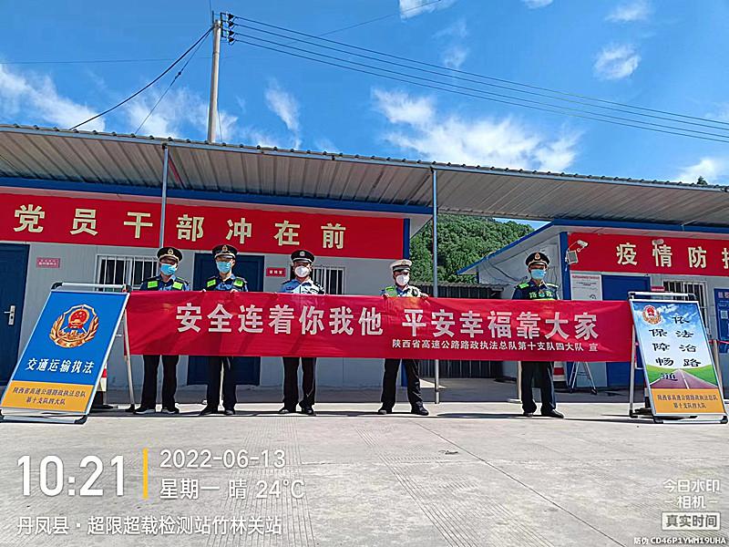 为进一步提升高速公路沿线群众安全意识,推进安全生产工作向纵深发展,6月11日至12日,省路政执法总队第十支队四大队联合丹凤县公安交警、交通运输综合执法大队及高速运营单位在商南西收费站、金丝峡服务区等地,开展“安全连着你我他、平安幸福靠大家”为主题的宣传活动。