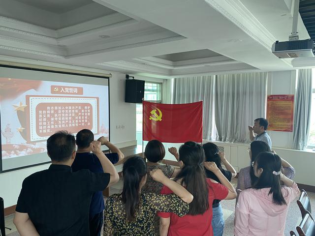 重温入党誓词,唤醒入党初心。支部党员面向党旗,铭记入党誓言,不断鞭策和激励自己,以更加饱满的精神、更加优异的成绩践行对党庄严承诺。