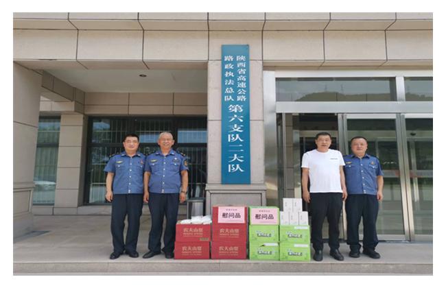 7月9日,第六支队副支队长梁延带队慰问了二大队、四大队,为高温下坚守工作岗位的基层高速路政执法人员送去防暑降温慰问品和组织的关怀,感谢大家顶烈日、冒酷暑,为高速路政高质量发展作出的贡献,叮嘱大家在工作中一定要注意防暑降温,确保安全。