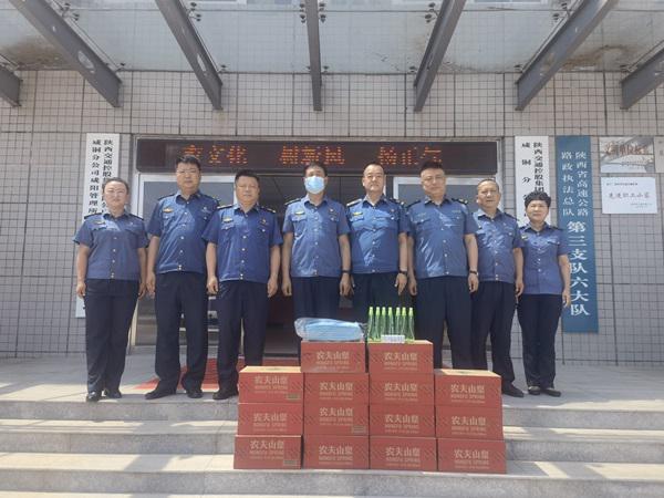 骄阳似火,酷暑难当。连日来的高温天气,考验着奋战在一线的路政执法工作人员的同时,也牵动着总队、支队领导们的心。为做好防暑降温工作,确保一线执法人员安全度夏,促进各岗位安全生产,总队第三支队领导不畏酷暑,为奋战在高速路政执法一线的执法人员“送清凉”。