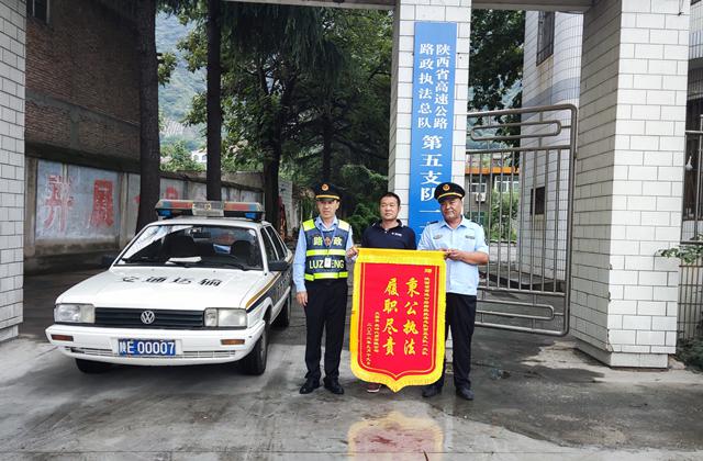 近日,大荔某汽贸有限公司将一面写有“秉公执法,履职尽责”的锦旗送到省路政执法总队第五支队一大队,对执法人员秉公执法、执法为民表示感谢。