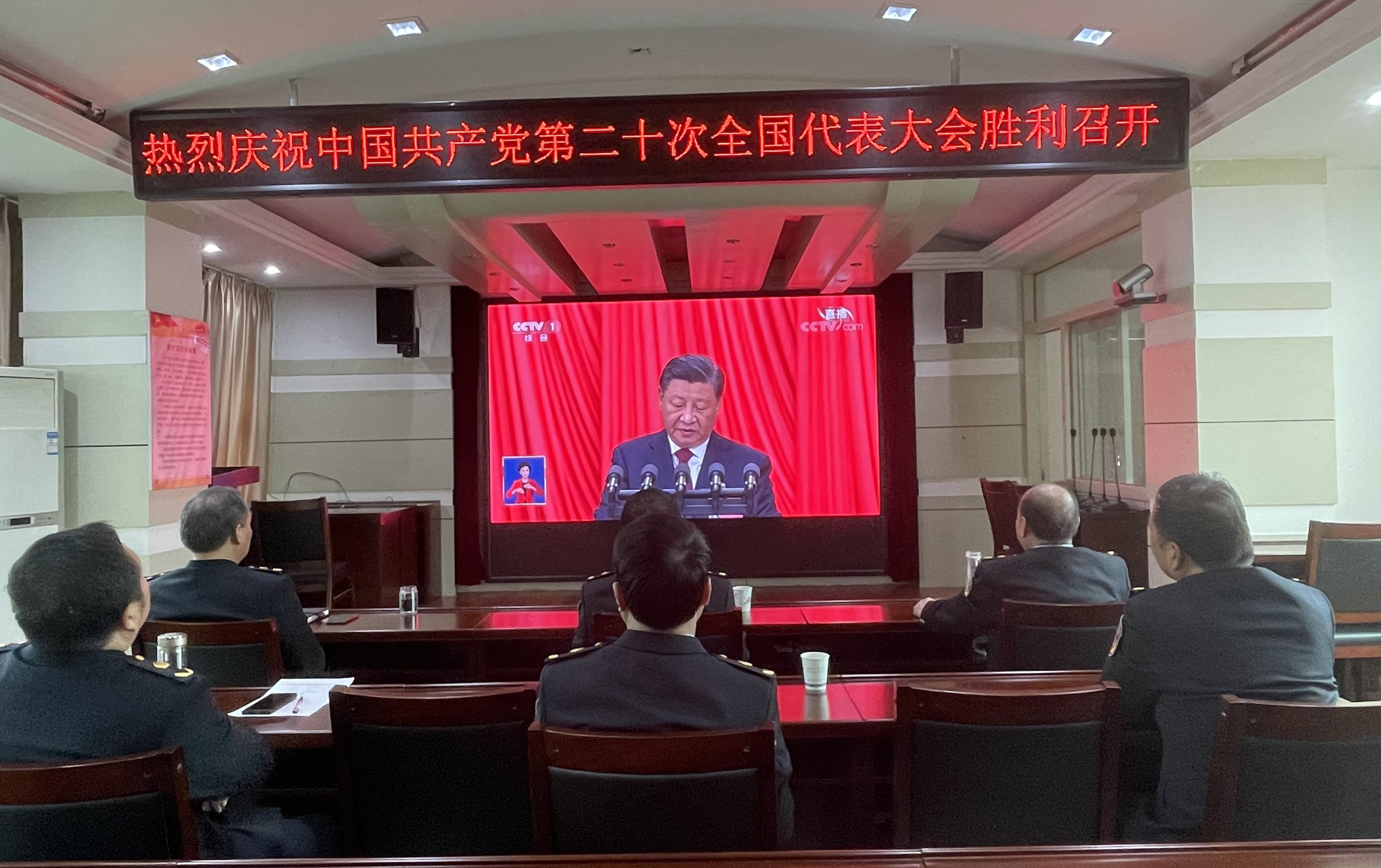 10月16日上午10时,万众瞩目的中国共产党第二十次全国代表大会在北京人民大会堂隆重召开,省路政执法总队第十支队组织干部职工收看党的二十大开幕会直播盛况。