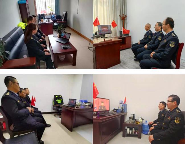 受疫情影响,支队领导班子和部分职工在机关会议室观看直播,其他人员在大队驻地或居家收看开幕会盛况。