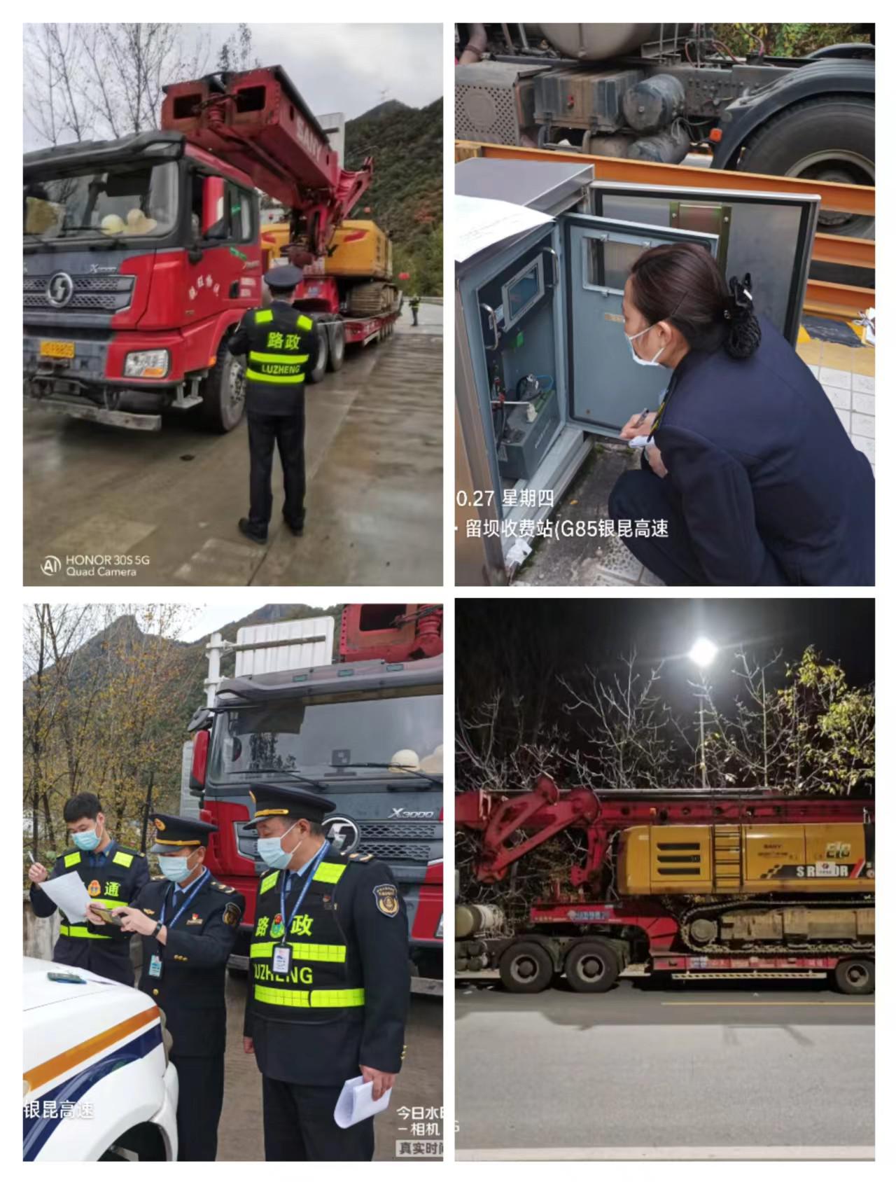 由于近期汉中疫情防控形势较为严峻,按照目前疫情防控政策要求,对外省风险地区来陕人员疫情防控措施更趋严格,加之,该货运时限紧急,对于疫情防控下快速、安全、规范完成核查工作,执法人员面临了不少考验。四大队执法人员主动协助驾驶员收集填报相关资料信息,协调办理大件运输许可手续。由于该车辆轴载不符合规定,需要调整后重新预检,大队执法人员耐心给车主讲明情况,重新进站核查。调整车身,上站检测,通过采用“说理式执法”,耐心细致解释,安抚劝导,消除了司乘的急躁情绪,并协同留坝管理所安全路产股巡查人员,在多方通力协作下,大件运输车辆称重和轴载顺利完成了核查。同时,支队积极协调快速办理了超限运输许可证。为方便司乘人员,大队执法人员还为驾驶员提供了方便面、纯净水和火腿肠等便捷食物。
