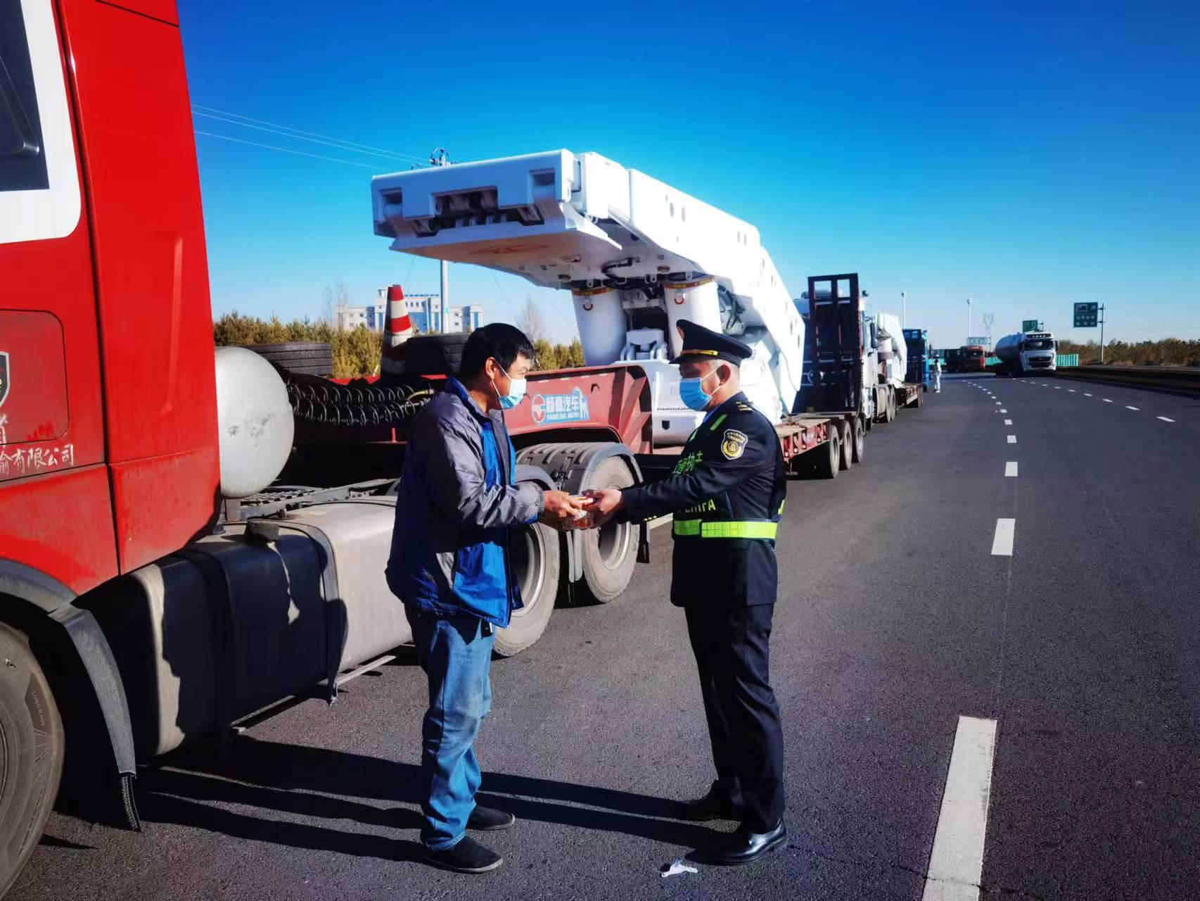 11月7日上午,总队第七支队二大队执法人员赴榆林西高速公路收费站慰问因疫情滞留的长途货运车辆驾驶员,为他们送去食物等生活必需品。